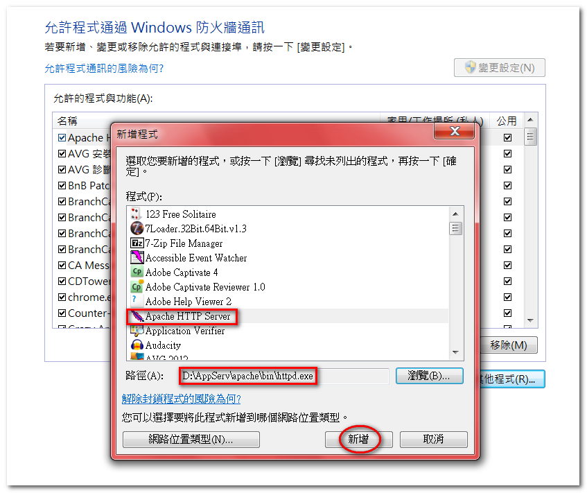 原本,以為大功告成,後來,發現只有本機可以連上論壇,其他主機都無法連線。依經驗判斷,有可能是防火牆阻擋了資料的存取。因此,在控制台 -> 防火牆 -> 新增允許程式「Apache HTTP Server」通過以後,也就沒有連線的問題了。