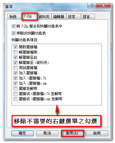 7-Zip 的安裝與設定: