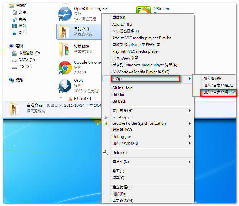 7-Zip 的壓縮與解壓縮: