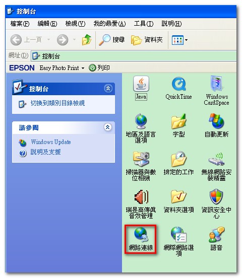 如果看不到(系統工具列上)網路連線的圖示,那麼可以進到「控制台」找到它: