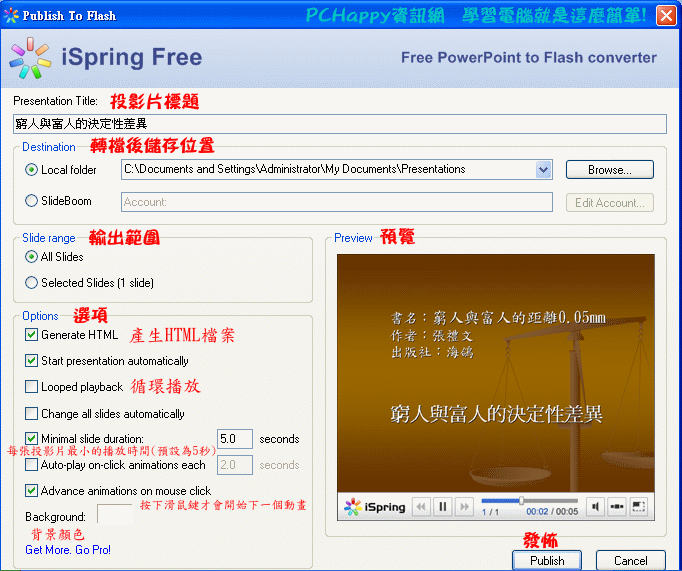 【執行 iSpring Free 轉成 Flash 動畫檔】