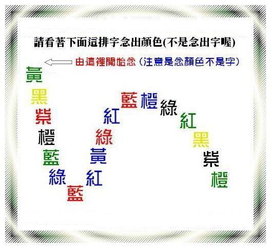 你的右腦嘗試說出顏色,但你的左腦卻堅持要讀出字音。