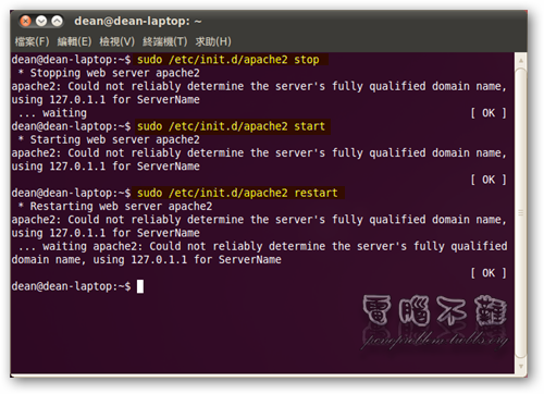 - 重啟 Apache:sudo /etc/init.d/apache2 restart
