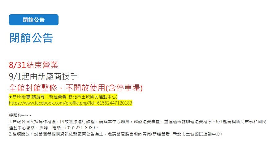 ★新FB粉專(請搜尋:新經營者-新北市土城國民運動中心)