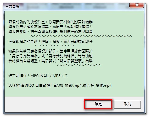- 執行完畢,按「確定」,即會開啟轉檔後的位置。