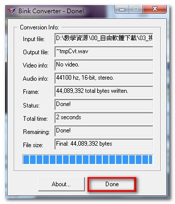 - 出現運作的視窗,執行完畢, > 按「Done」