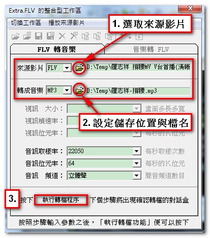利用 Extra.FLV 轉檔下載的 YouTube MV 為 MP3