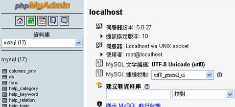 不過我臨時找不到能夠讓我攝圖的4.1的伺服器,所以我就用我這台MySQL5.0.27的版本來攝圖