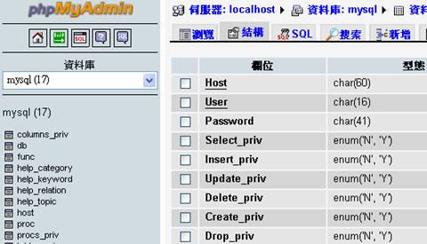 早期MYSQL的密碼是存放於MySQL資料庫(這個資料庫是安裝時就會產生的)其中的資料表user裡面的