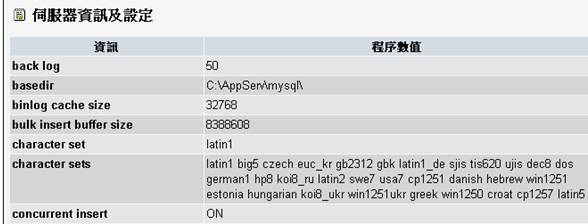 character set client 的『整體值』= latin1