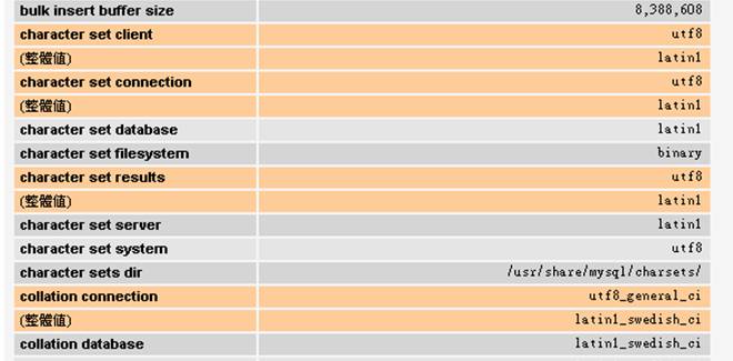 character set connection 的『整體值』= latin1