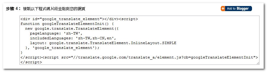 新增 Google 的網站翻譯工具到您的網頁,即可隨時提供網頁的自動翻譯。目前,「Google 翻譯」是一個免費的自動翻譯,支援的翻譯語言有 57 種。詳細情形,可瀏覽其官方網站的解說。新增的方法,非常快速且方便。本文圖示其步驟,並且舉例說明之。