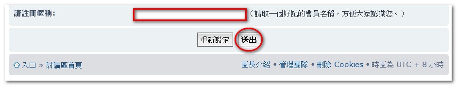 - 請取一個好記的會員名稱,方便大家認識您,按「送出」