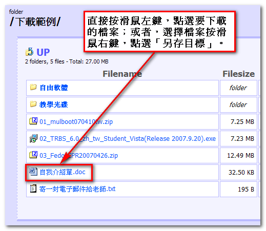 3. 點選需要下載的檔案:建議按滑鼠右鍵,點選「另存目標」。