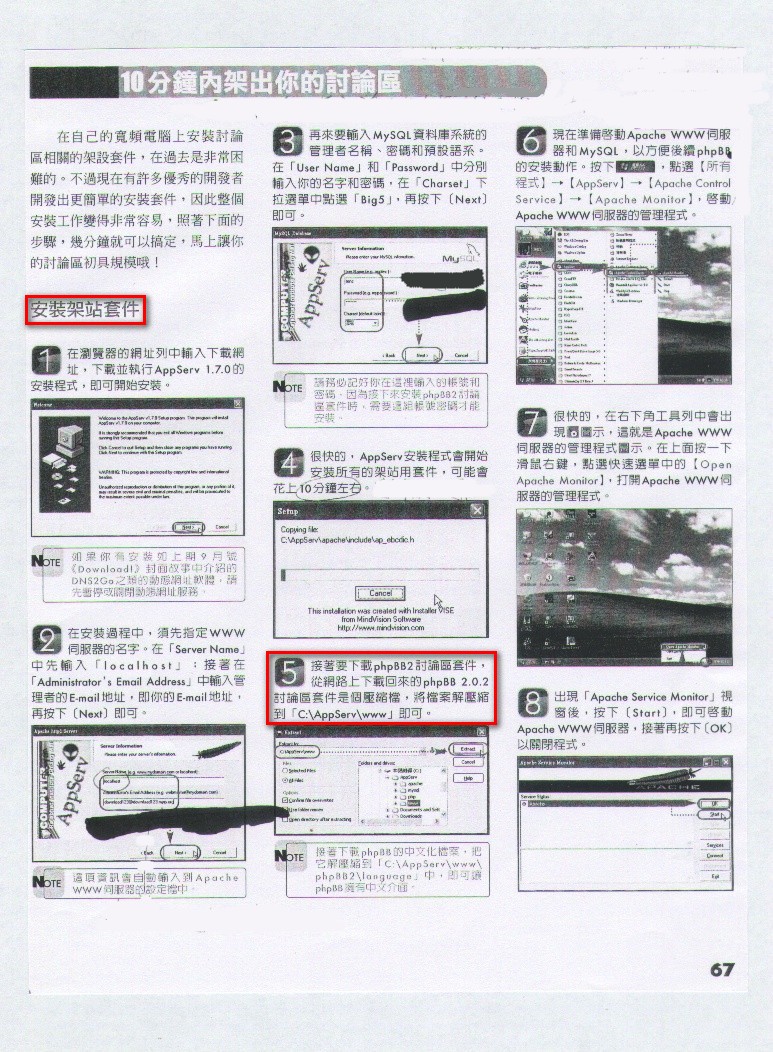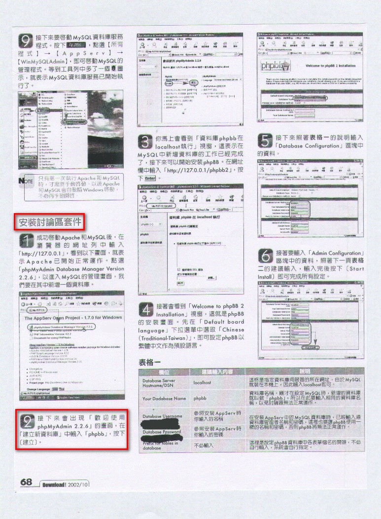 如果您有興趣將 AppServ 架站的套件,改以獨立完成 Apache、MySQL、PHP、phpMyAdmin 等之建立的話,