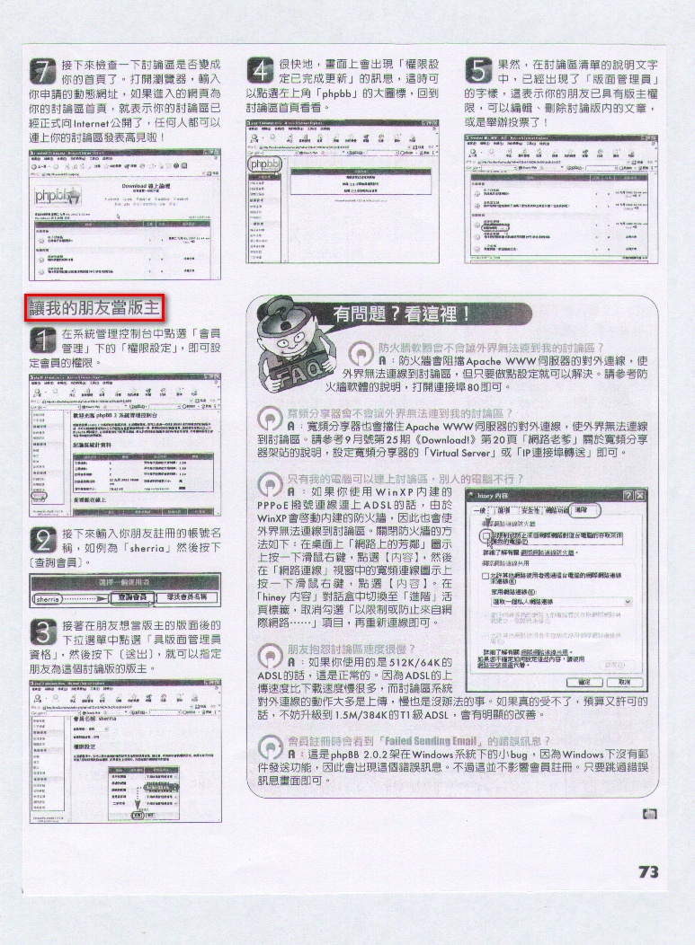 大約在十年前,因為看到 Download! 2002/10 月號雜誌(p.s.1)的一篇文章「架設討論區,我自己就行!」,加上剛好申請了固定 IP,於是依樣畫葫蘆下,建立了「心靈捕手討論區」。直到現在,這個討論區已經變成個人教學上的利器,同時也成為生活的重心之一。
