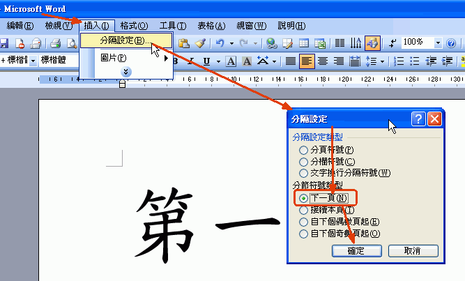 [轉貼] 直式 Word 2003 文件,如何設定部份頁面為橫式?