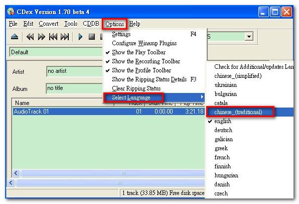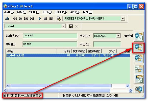 2. 開啟 CDex:會自動偵測光碟機裡頭的 CD 曲目