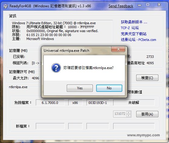 Re: [轉貼] 【ReadyFor4GB】Win 7(32bit)擺脫記憶體被限制4G!!