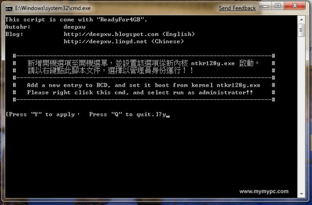接下來我們來更改開機系統選單,其實也很簡單,在ReadyFor4GB的資料夾中有個「AddBootMenu.cmd」,