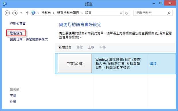 在 Windows 8 中使用輸入法的設定時和先前的版本有些不一樣,例如預設的輸入法為何?預設的輸入模式要中文或是英文?而稍微整理一下設定方式。先來看看你的帳戶預設的輸入法狀態為何: