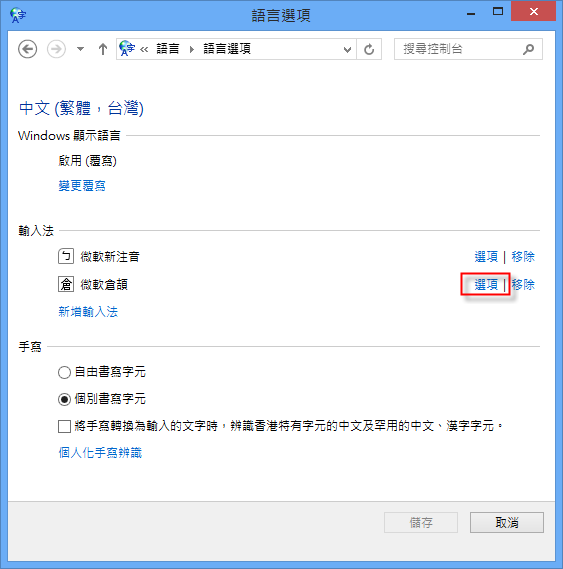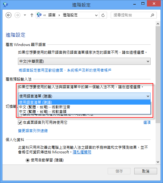 你可以在此修改你想要的第一個輸入法,按一下[儲存]按鈕: