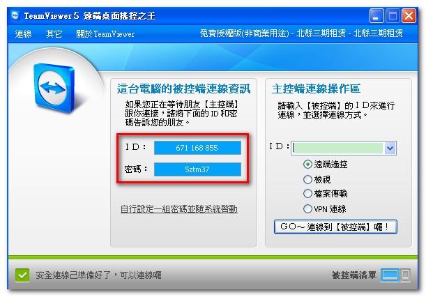 2. 將您的 ID 和密碼告知遠端欲連線者,即可