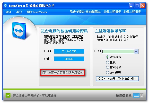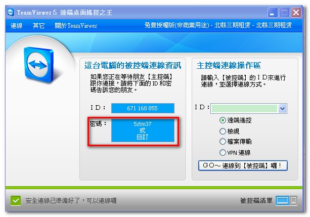 此文的貼圖,乃擷取自 TeamViewer Portable 5.0.8081cht_SD.exe。