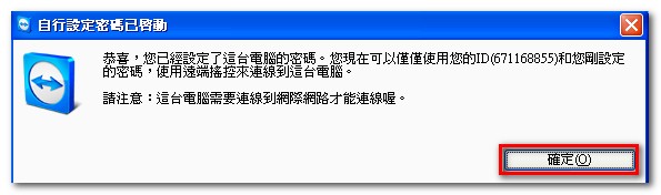 • 自行設定密碼已啟動 -> 按「確定」