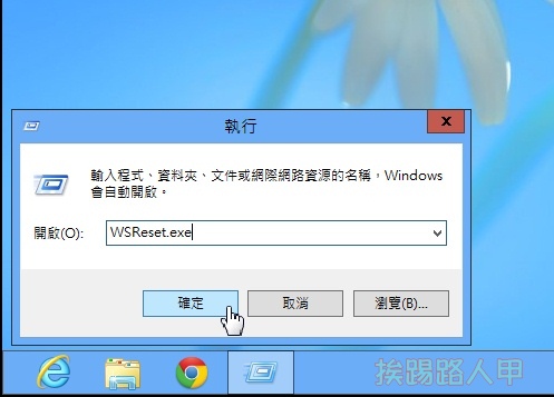 面對蘋果的App Store與Google Play Store的兩大市集,微軟也不甘示弱的推出Windows Store市集,快取的機制也蠻複雜的,長時間後會不會擔心快取的效率與龐大呢?裡介紹一個可以清除Windows 8 市集快取的內建程式「WSReset.exe」,這個內建的WSReset.exe是隱藏在「%windir%\system32」目錄中,一般人是不會察覺到的,所以請按下〔視窗鍵〕+〔R〕, 接著在出現的「執行」視窗上輸入「WSReset.exe」,最後按下〔確定〕即可執行此程式,詳細文章可參考「清除Windows 8〔市集〕的快取與暫存區」文章。