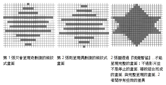● 1080i 的影片畫面, 每個畫面都是條紋式的: