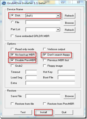 5. 執行Grub4dos Installer 工具設定MBR。