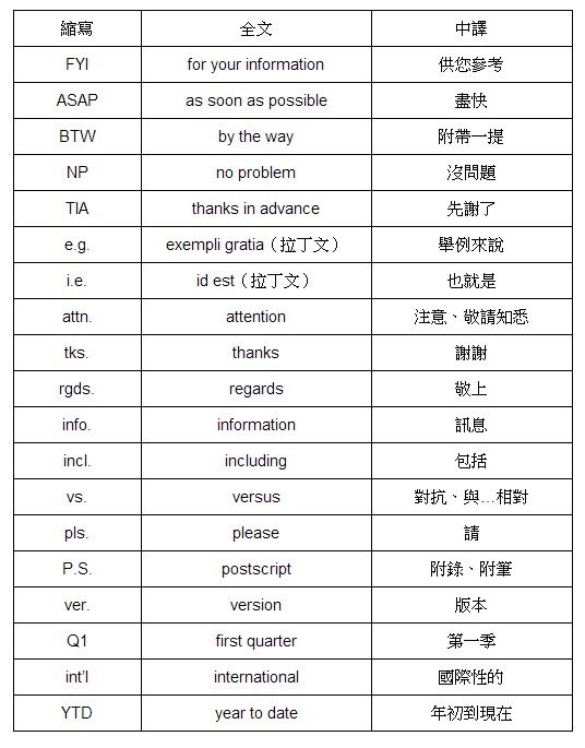[連結] 職場菜鳥必備筆記!公司 Email 最後寫 FYI 什麼意思?一篇文搞懂 19 個常見英文縮寫
