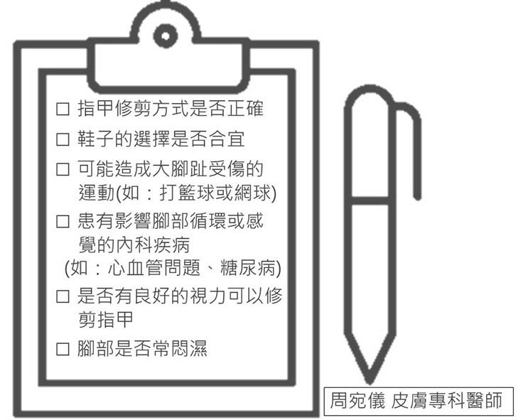 預防勝於治療,請回顧自己或家人是否有造成嵌甲的危險因子,包括