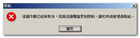 • 重新啟動 Windows XP 後,當學生點選 msn、yahoo 即時通時,便會出現下列視窗而無法使用。