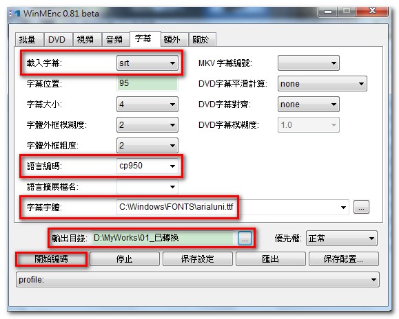 因此,得先利用 WinMEnc 將字幕內嵌於影片中,才能順利燒成 DVD。