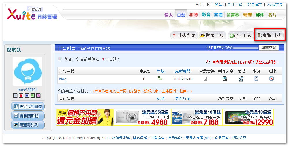 本文僅(圖示)說明在 Xuite 註冊以及啟用日誌(部落格)的方法。