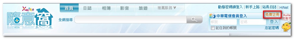 - 在隨意窩 Xuite點選「免費註冊」。