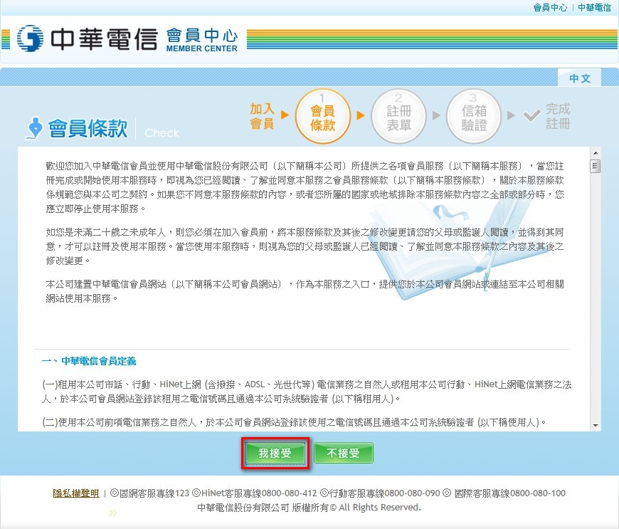 - 在「會員條款」頁面底下,按「我接受」。