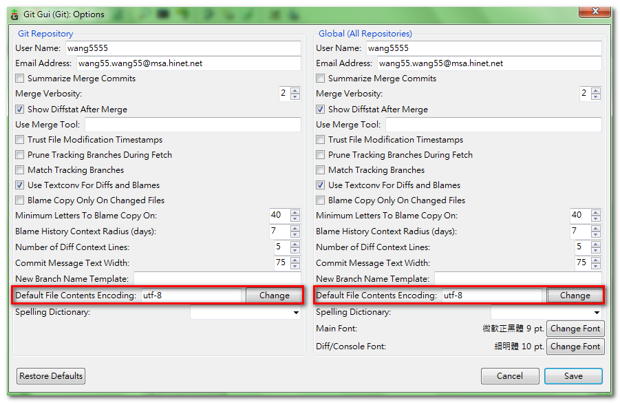 $ git config --global user.email "wang55.wang55@msa.hinet.net"