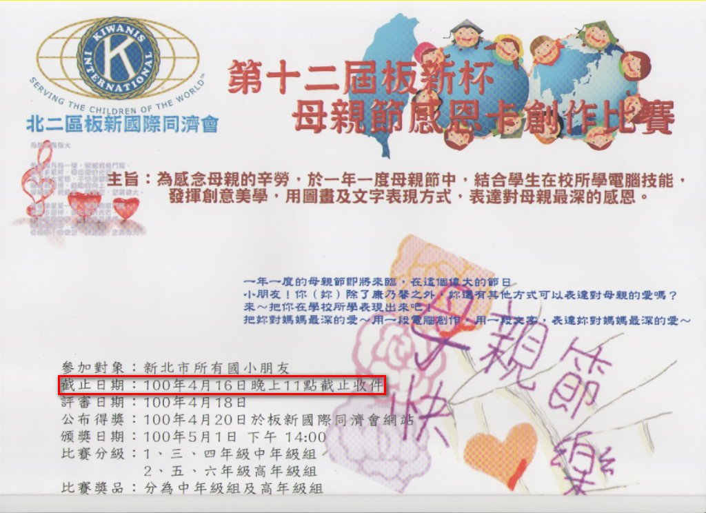 - 主旨:板新盃第十二屆母親卡設計比賽